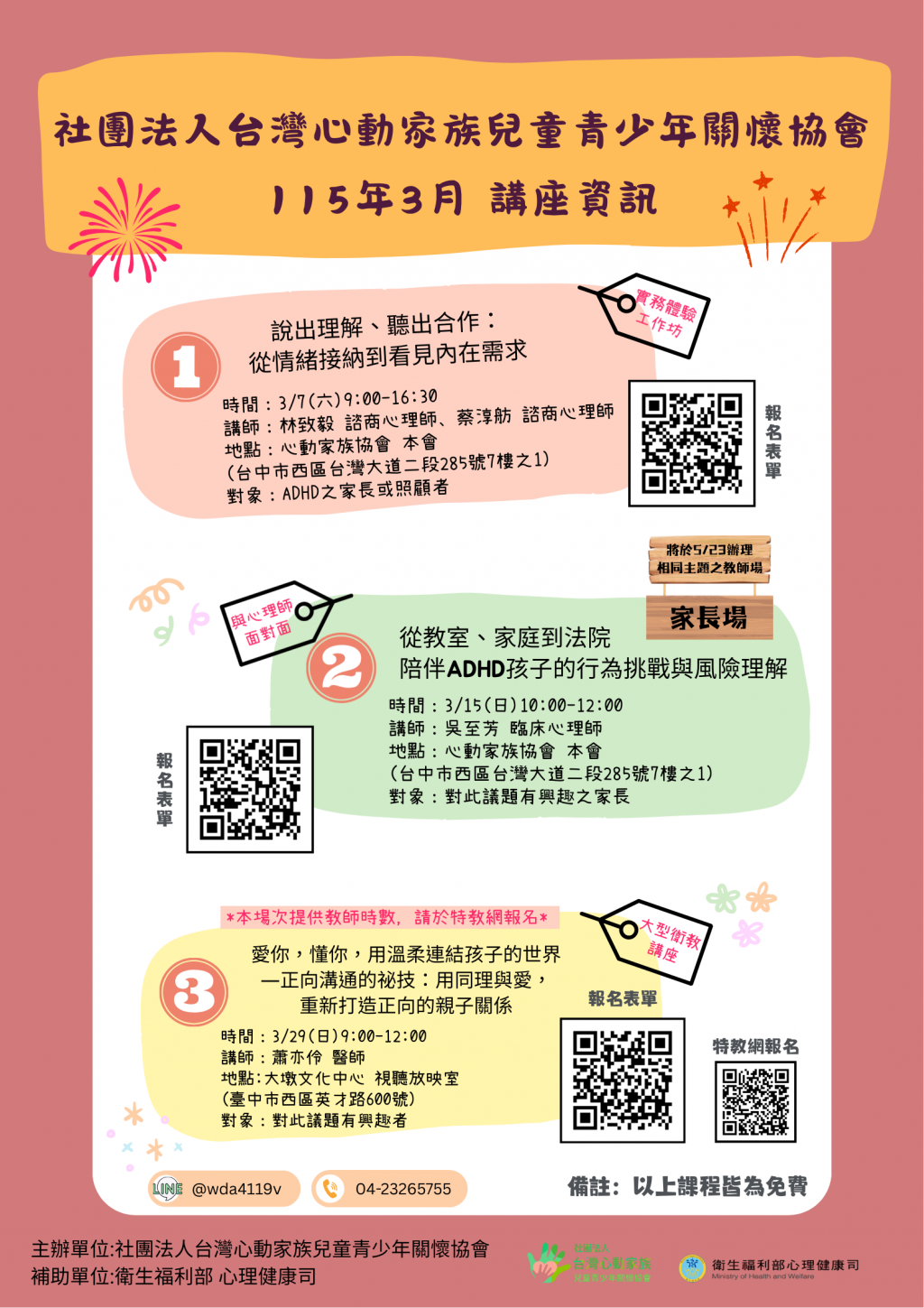 轉知:心動家族115年03月 ADHD 相關主題講座及工作坊